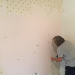 I grabbed some sandpaper and set out to accomplish what I should have been a 5 minute job only to find that wherever I touched the sandpaper to that border, the paint fell off. In huge patches. It was terrifying. Everywhere the sandpaper touched, a silver-dollar-sized section of paint came loose from the ceiling and fell to the floor like huge a snowflake. I would sand in ever expanding circles, expecting (hoping) to find some section of paint that was still stuck to the ceiling, but no. No matter where I sanded more and more flakes started falling. At that point, the kids came in, saw the mess on the floor and all the missing paint on the ceiling, and said “Mom’s going to kill you when she gets home….”